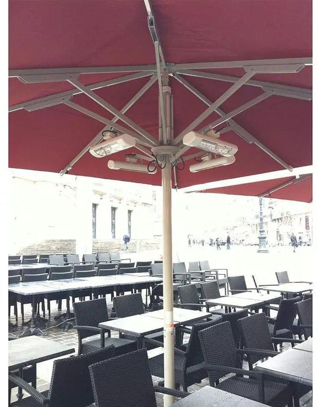 SUNHEAT heaters use a patented quartz lamp surrounded by an emitter. The gold coated emitter delivers a hotter, more instant heat. Unlike other outdoor heaters, SUNHEAT wall mounted heaters give a very low glare, but you will feel warm and comfortable immediately. Suitable for wall and parasol mounting (Wall