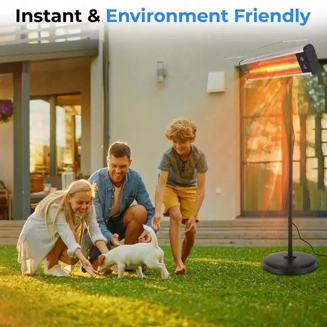 The SereneLife SLOHT40 Electric Patio Heater is the perfect addition to any outdoor or indoor space, providing efficient, sun-like infrared heating. With a height-adjustable design and remote control functionality, it offers convenience and versatility in heating. This heater is ideal for patios, balconies, and outdoor living areas, offering safe and efficient warmth without gas or propane. The high-efficiency carbon fiber elements, combined with a high-rated aluminum reflector, provide optimal heating coverage up to 20 sq. ft. The unit is IP65 rated for water and dust resistance, ensuring reliable performance in outdoor environments.
