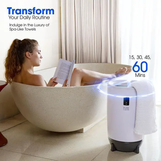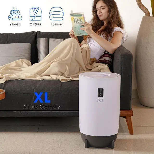Elevate your comfort routine with the Pure Clean 20L Towel and Blanket Warmer. Designed for cozy moments, this stylish warmer fits up to two large bath towels or a small blanket, making it perfect for bathrooms, bedrooms, or home spas. The intuitive single-touch control system makes operation a breeze, while the built-in fragrant disc holder lets you add soothing essential oils for an enhanced relaxation experience. Customize your warming time with preset options (15, 30, 45, or 60 minutes), and enjoy peace of mind with the auto shut-off feature.