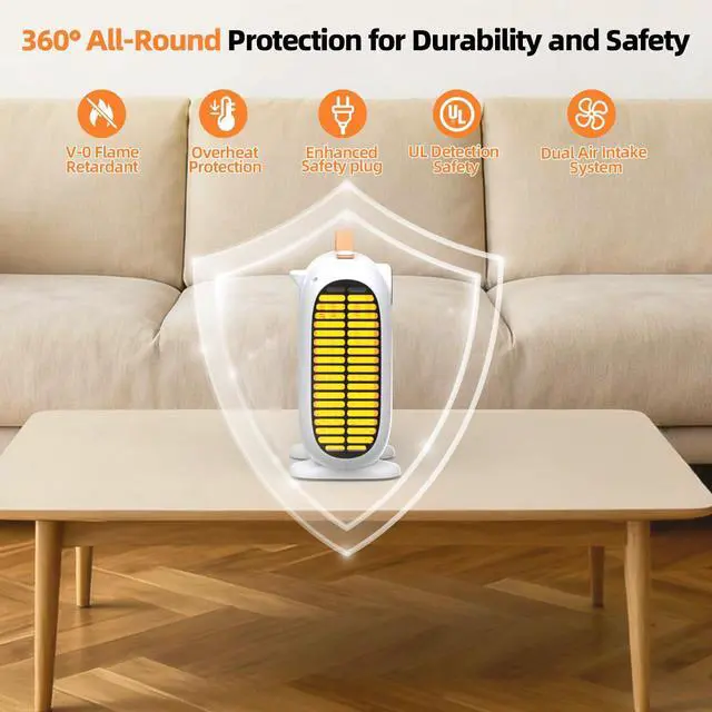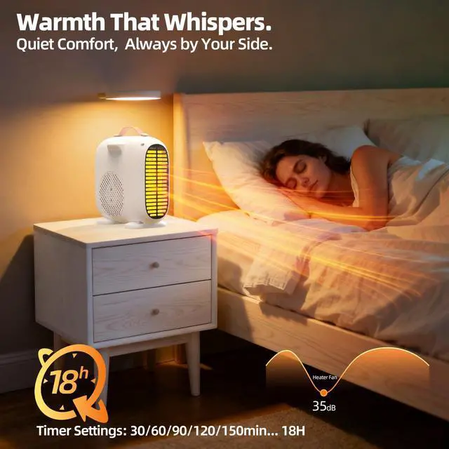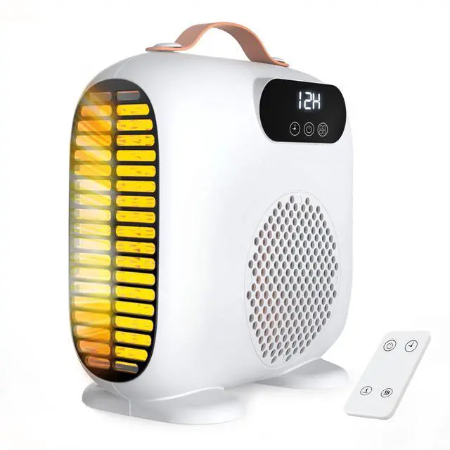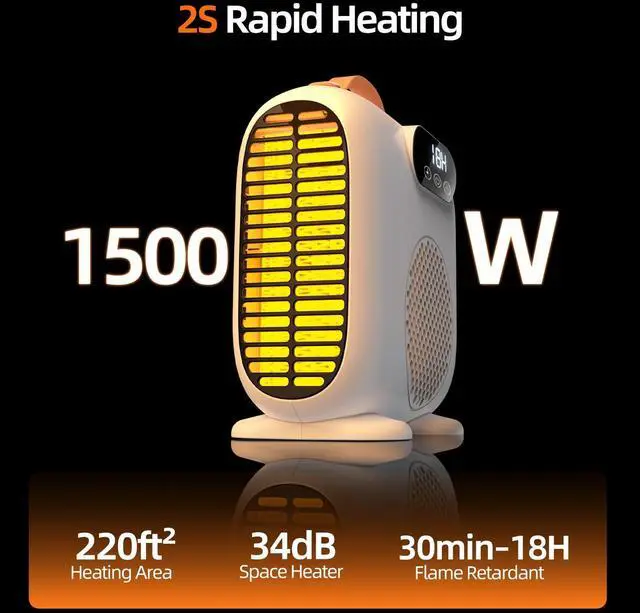 2-in-1 Heater & Fan: Gyrivav versatile PTC ceramic heater is your year-round solution, providing instant warmth in winter and a cool breeze in summer. Experience rapid heating in just 2 seconds, effectively warming spaces up to 220 sq. ft. with a powerful output temperature of up to 146°F (63°C). Advanced Safety: Engineered with your safety as a priority, Our space heater is constructed from flame-retardant materials. The electric heater features automatic overheat protection (shuts off at 167°F) and a 18-hour auto-shutoff timer, providing an extra layer of security for worry-free operation day and night. Upright & On Its Side: Unlock versatile heating with our space heater, designed for both upright and horizontal use. It safely operates even when laid on its side, giving you the freedom to direct warmth precisely where it's needed. This is supported by high-quality metal vents and a dual air intake system for efficient, consistent heat. Touchscreen & Remote Control: Experience effortless control with this small space heater. It features 3 intuitive touch buttons on the unit for basic operation. The included remote (range: 9.8 ft / 3 m) puts full command in your hands. Power the unit on/off, select mode settings, and set the timer (up to 18 hours), and check the settings on the clear LED displayall from your couch or desk without moving. Fast, Focused Warmth: Gyrivav desk heater uses wide-angle directional heating with a fixed design to concentrate warmth exactly where you need it, avoiding the heat loss of oscillation for quicker and more comfortable results.Feel powerful warmth from up to 16.4 feet (5 meters) away. Shop with absolute confidence, backed by our responsive 24/7 customer service team, a 30-day return policy, and a 12-month. Quiet Operation,Compact & Portable: This portable heater featuring a low-noise design, it operates at just 34dBfar quieter than most similar products on the market. room heaters for indoor use ideal for noise-sensitive spaces like bedrooms, nurseries, and home offices, it wont disturb sleep, work, or study. With a compact size (approx. 9.2"×4.7"×9.4") and a sleek leather carry handle, its easy to move around and fits perfectly on desks, nightstands, or other small spaces.