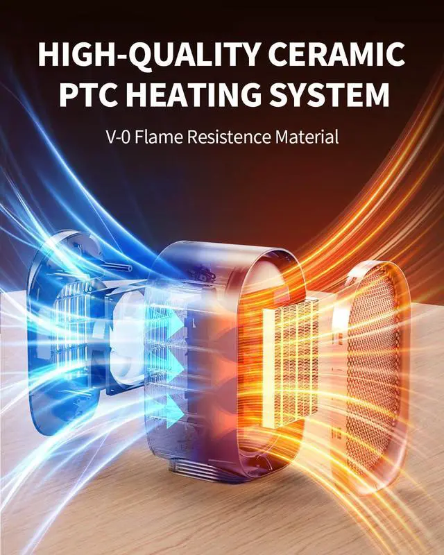 QUIET INDOOR SPACE HEATER Near-silent 40dB operation ensures zero disturbance. Fire-resistant casing provides 360° protection. Ideal space heater indoor for children's rooms, dorms, and home offices.