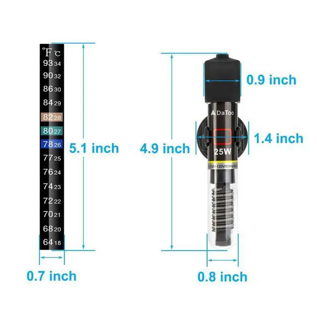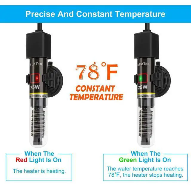 DaToo MINI 25W Aquarium Heater will automatically keep the water temperature constant at 78?. Simple and convenient, very suitable for beginners.