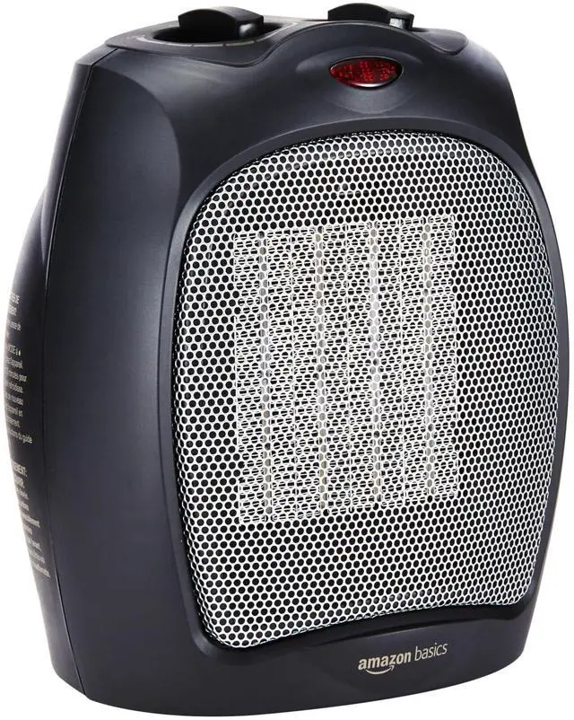 Ceramic Space Heater, Portable Indoor Heating Solution, With Overheat and Tip-Over Protection, Thermostat, Non-Oscillating, 1500W, 7.52"D x 6.34"W x 9.45"H, Black