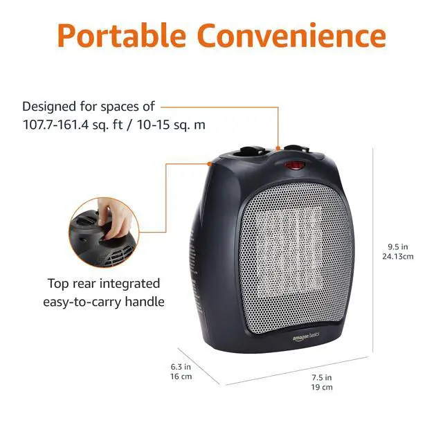 COMPACT & PORTABLE: Weighing just 3 lbs and sized at 7.5L x 6.3W x 9.5H, this space heater is easy to move and perfect for your Home, Office.