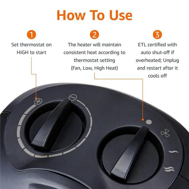 CUSTOMIZABLE HEATING OPTIONS: Choose from three settings to suit your needs - High (1500W), Low (900W), or Fan Only for air circulation without heat.