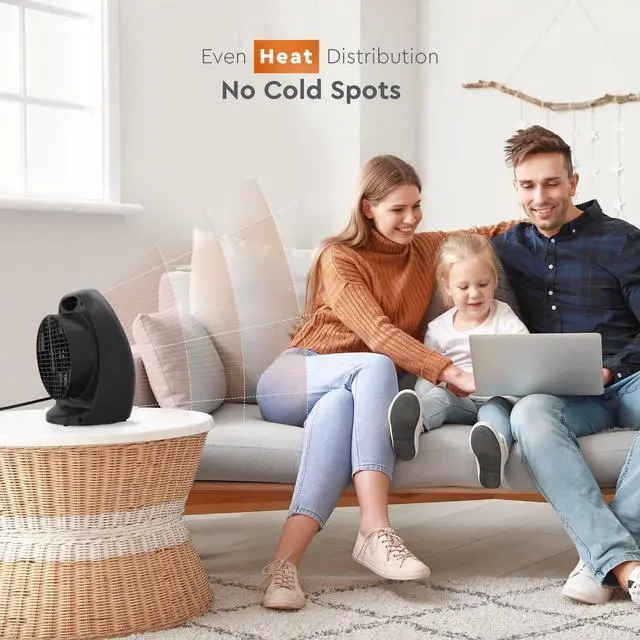 Rest assured with our safety-focused design, which includes a tip-over switch and an overheat protection system. Additionally, the heater body is cool-to-the-touch for ease-of-handling. These features provide peace of mind when using this small electric heater around children or pets. Your family's safety is our top priority.