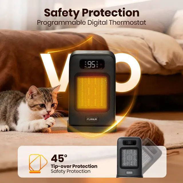 Safety First: Small heaters for indoor use built in overheat protection and automatic tip over shut off ensure safety. The small heater for office space heater automatically powers down after 24 hours of continuous operation. Even after the electric heater's LED display turns off, a 30-second residual heat dissipation program runs. Small heater for office space heater is providing comprehensive safety for use in bedrooms and offices