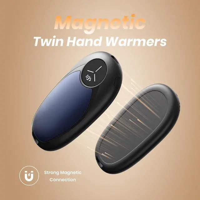 Magnetic rechargeable hand warmers with 3 heat levels up to 131. Heats in 3s and can be combined for double-sided use or shared separately. Ultra-light, pocket-sized, and safe with smart temp control. Perfect for commuting, camping, skiing, hiking, or as a thoughtful winter gift for men and women.