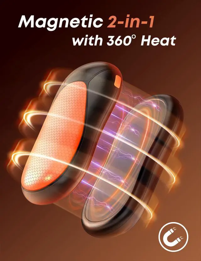 A: Each pocket hand warmer heats on one side for safe, efficient warmth. But thanks to the magnetic design, you get two rechargeable hand warmers in one set simply snap them together to enjoy 360° all-around heat. This makes them versatile for outdoor sports, office use, or as thoughtful winter gifts.