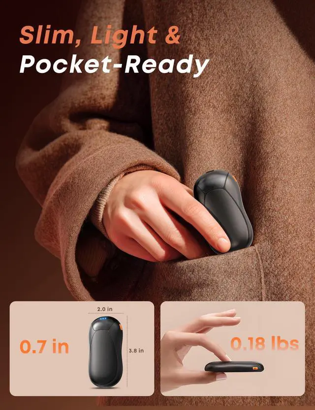 A: Definitely. These portable rechargeable hand warmers are only 0.7in thick, slim and lightweight enough to slip inside gloves for all-day warmth without bulk.