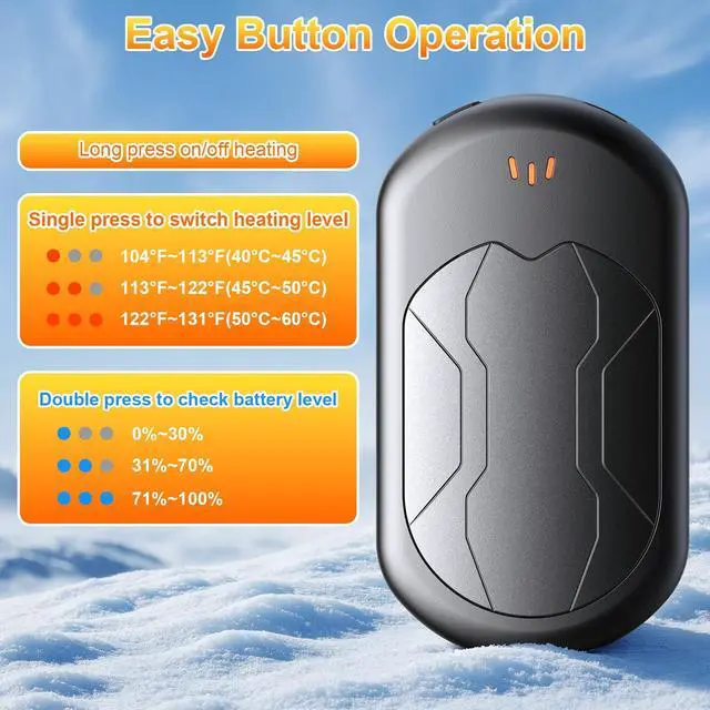Are you still worrying about the coldness when you want to go out for some activities? Are you still heartbroken for the child's frozen hands?Are you still worried about the women in your family who are susceptible to cold in winter? Please pay attention to our light and partable 2 pack rechargeable hand warmers which is designed with advanced AI chip to offer all-around safety and security.Our electric hand warmer is more advanced than conventional hand warmers,a pair of 2 pack could simultaneously transmit heat to your hands.Instant heating and longer warmth keeping keep you comfortably heated throughout winter days.3 Temperature Modes are setted to meet personal needs.Intelligent chip will protect your warm experience all the time.In the cold winter,express your love to family and friends from warming hands to caring for the whole body.Our hand warmers is really an ideal gift for Thanksgiving,Christmas,New Year,birthdays,and Valentine's Day.Gifts for Christmas Men and Christmas Gifts for Women.Of course, it will also be your intimate companion in the snowy days to have fun!