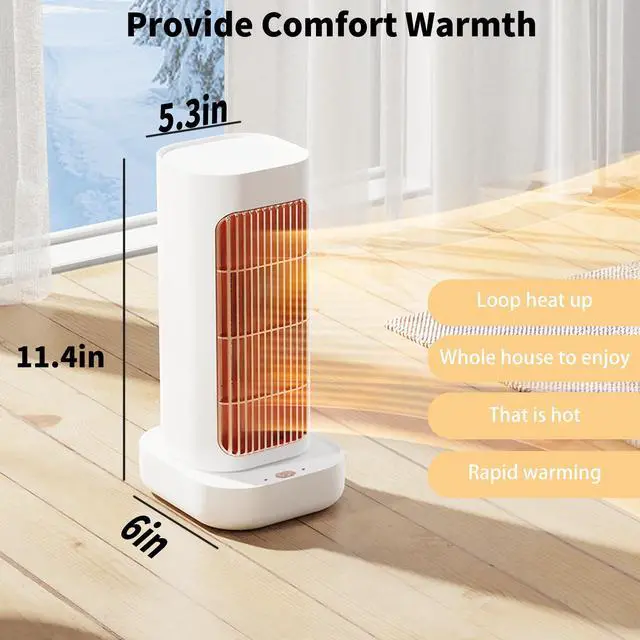 Space Heater, Small Electric Space Heaters with 90° Oscillation, Portable Space Heaters for Indoor Use, Overheat & Tip Over Protection Room Heater for Bedroom, Living room, Offices, Garage, White