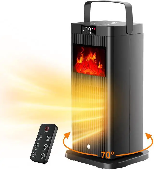 2026 New Space Heater, ETL & UL Portable Space Heaters with Fireplace Flame Effect 1500W Oscillating Electric PTC Ceramic ECO Mode Temp Control Heater for Indoor Use,Bedroom,Office,Desk,Garage