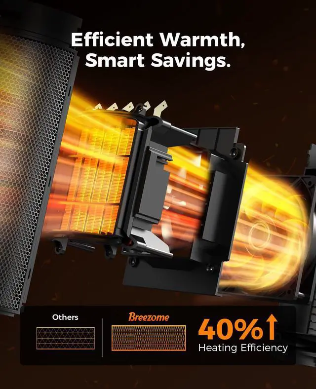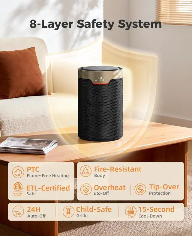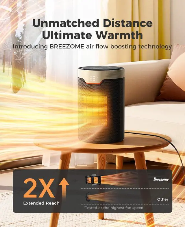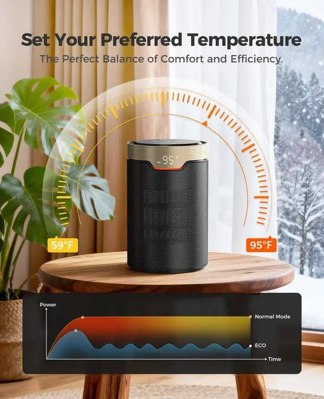 SMART AND VERSATILE: Our desktop heater offers three distinct modesWarm, ECO, and Breezeto meet all your needs. The Warm mode provides three adjustable heat levels (H1, H2, H3) for personalized warmth. In Smart ECO mode, you can set your ideal temperature between 59-95, optimizing energy efficiency while ensuring consistent comfort. It also have a breeze mode that can blow cool air.