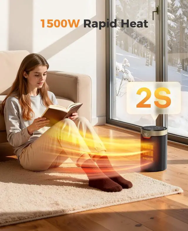 Compact Size: Its compact and lightweight design makes it easy to move and place on a desktop or small surface, making it ideal for personal spaces like offices or bedside tables. Despite its small size, it delivers powerful heating performance. Additionally, a 24-hour timer allows you to program the heater to run only when needed.