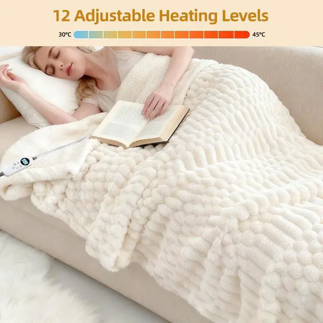 - Automatic transition:The heating blanket throw with the preheat mode operates for 1 hour at Level 12,then switches off and reverts to previous settings(memory mode)