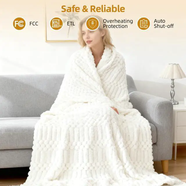 The heated blanket throw has undergone rigorous testing and obtained the well-recognized FCC and ETL, effectively avoiding electrical risks. Moreover, when the heated blanket is in operation, it does not generate excessive electromagnetic interference. The heated blanket with low electromagnetic radiation design provides safer and more reliable warmth protection for you and your family.