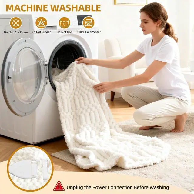 The heated blanket throw can be washed by machine, and it is easy to take care of your heated blanket,but please read the precautions in the care instructions section of the manual carefully.Please DO NOT dry clean /DO NOT use bleach or cleaning fluids/DO NOT use a wringer./DO NOT iron/D0 NOT use mothballs o sprays of any kind/DO NOT reconnect the heated product or use it untili is COMPLETELY dry.