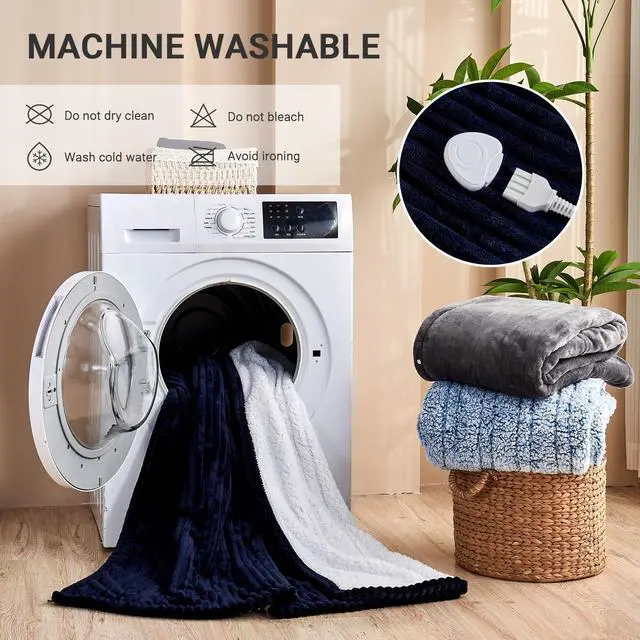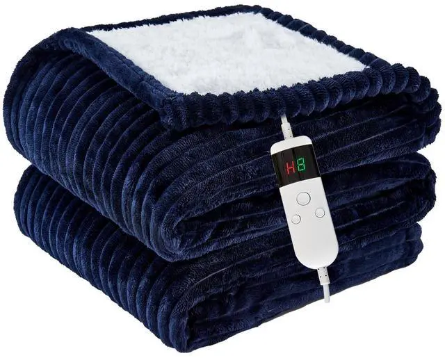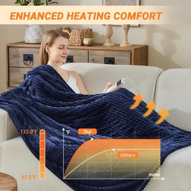 Qieryun Heated Blanket Electric Throw, Soft Flannel Heating Blanket with 8 Hours Auto Off 10 Fast Heating Levels Machine Washable Sherpa Heated Blanket with Overheating Protection