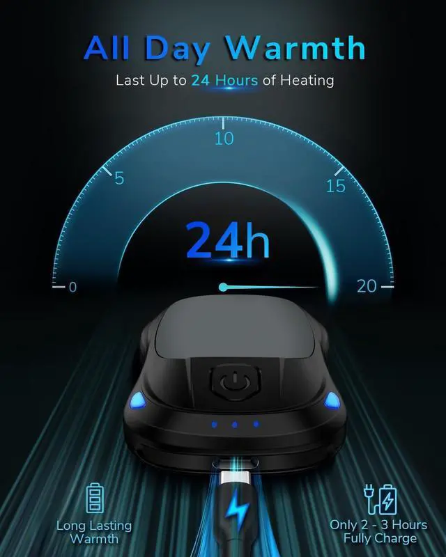 The electric hand warmer's fast-charging feature with Type-C port combines convenience and efficiency, taking only 2 to 3 hours to fast-charge, so you can enjoy warmth and comfort whenever you need it.