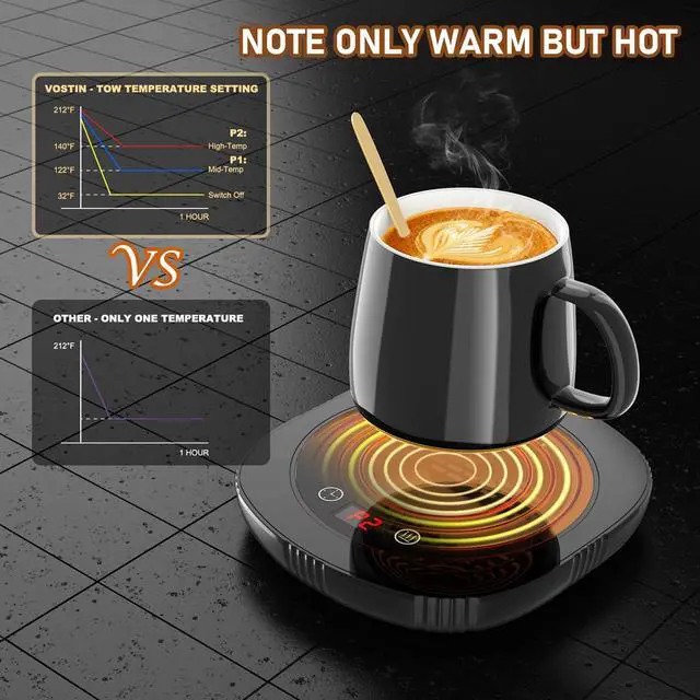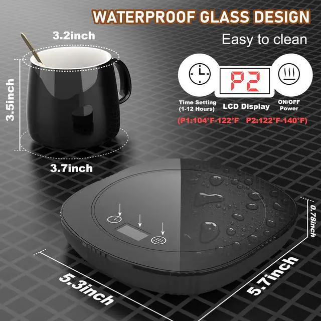 Experience the Comfort of WarmthOur coffee mug warmer features high-efficiency PTC heating elements for fast heat transfer, ensuring your favorite beverage stays warm. This versatile coffee heater can maintain the temperature of hot drinks and even heat up cold beverages to two adjustable settings: 104°F-122°F and 122°F-140°F, making every sip as delightful as the first ideal for leisurely savoring coffee, tea, or hot chocolate.