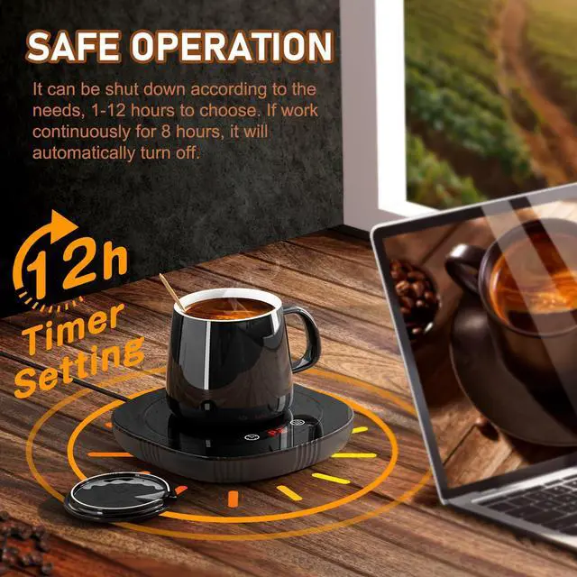 1-12H Automatic Shut-Off Coffee Cup WarmerTEquipped with a timer function, this coffee cup warmer allows you to set a duration of 1-12 hours through easy button controls. With an LCD digital display indicating current modes, our coffee warmer for desk is designed with an 8-hour automatic shut-off feature, providing peace of mind for users who might forget to turn it off, making it perfect for elderly and forgetful individuals.