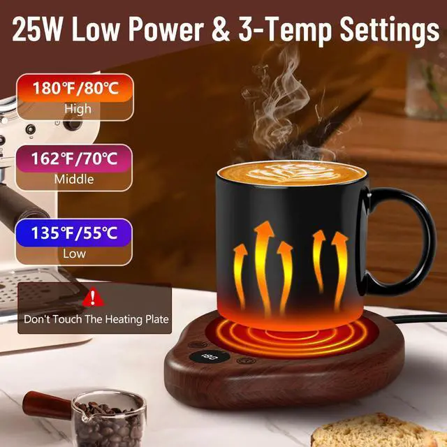 Intelligent Mug Warmer with 3 Temperature Settings: Our coffee mug warmer provides 3 temperature options for you to choose from, and you can freely switch between 135 55/162 70/180 80). Whether you want warm or hot coffee, just lightly tap with your finger and our coffee warmer will keep your coffee at the perfect drinking temperature