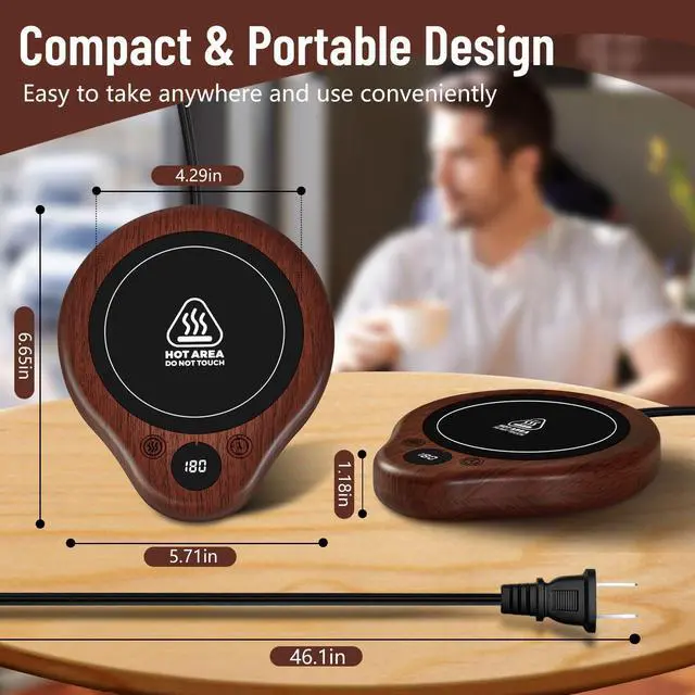 2-12H Timed Automatic Shutdown Mug Warmer for Desk: Our coffee cup warmer comes with 6 timed automatic shutdown modes (2H/4H/6H/8H/10H/12H). And by default, coffee warmer for desk will automatically shut off after 4 hours of continuous operation. This intelligent feature of cup warmer not only keeps your drink warm, but also allows you to work or enter deep sleep without any worries!