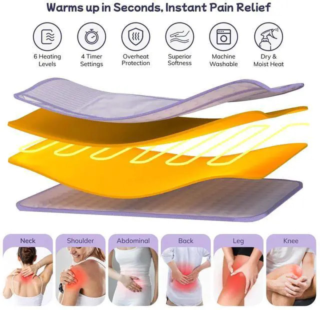 Large Size & Effective Pain Relief: 12'' x 50'' large heating pad heats up quickly in 30 seconds, provides greater coverage and steady warmth to all parts of the body. Perfectly and flecibly designed for your body, it helps promote blood circulation and soothe muscle aches and pain, which gives you more effective, targeted pain relief of your lower back, waist, abdomen, shoulders, arms, legs and other body parts