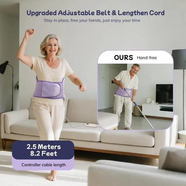 Hands-Free & Adjustable Strap: Unlike other heating pads, vilicert's 12'' x 24"+26'' extra-large heating pad provides greater coverage, and its flexible design conforms to body curves and fits different weights. You can adjust the comfortable size according to your waist size, the wearable heating pad release your hands while using it as lower back heating pad, period cramps, shoulder pain relief, etc
