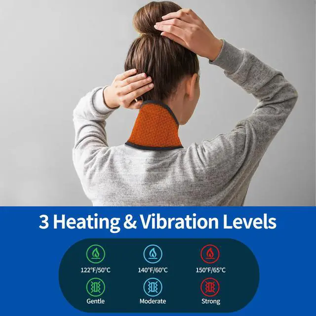 Heat and Massage Settings: Neck heat pads for pain relief features 3 heating levels (high, medium, low) and 3 Massage settings (high, medium, low).