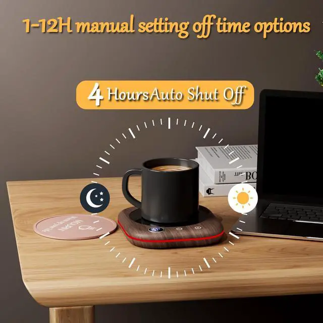4H Auto Shut Off and 1-12H TimerTimer function of the coffee warmer allows to customize the shut-off time in the range of 1-12 hours. Coffee mug warmer for desk will automatically shut down after working continuously for 4 hours by default