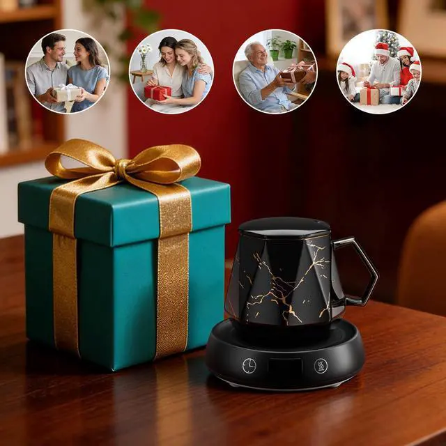 Coffee Mug Warmer & Marbling Mug Set, 1-9H Delay Start Timer Smart Heated Electric Cup Warmer for Desk Office, 3 Temperature Control Coffee Tea Beverage Warmer, 8H Auto Shut Off, Ideal Gifts for Man