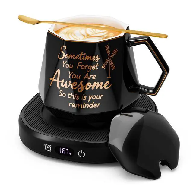 You're Awesome Coffee Mug Warmer Set, Smart Electric Coffee Cup Warmer for Desk Office, 4 Temperature Setting & 8H Auto Shut Off Candle Heater Beverage Coffee Warmer Birthday Thank You Gifts for Women