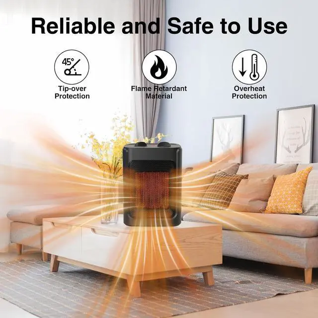 Multiple Safety Protections: The space heater is constructed from flame-resistant materials, utilizing an upgraded version of ABS material that enhances flame resistance, effectively mitigating any risk of fire hazard. The Overheat Protection feature automatically shuts down the heater when it reaches a critical temperature. The tip-over protection system also deactivates the heater if accidentally tipped over; upon righting the heater, it resumes operation.