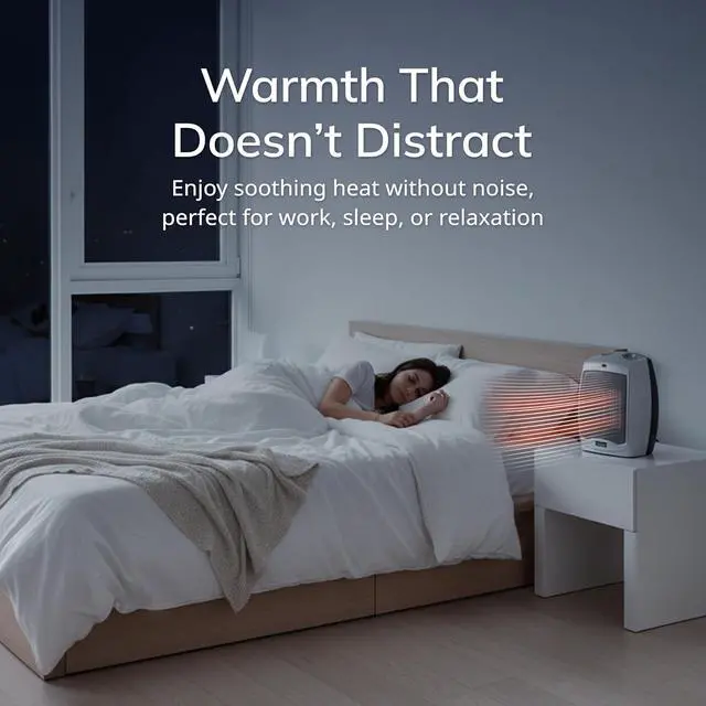 Convenient Carry Handle - makes it easy to move the space heater. Thanks to the heater' s compact size and convenient carry handle you can easily move the heater from the kitchen, to the bedroom, or even under the desk.