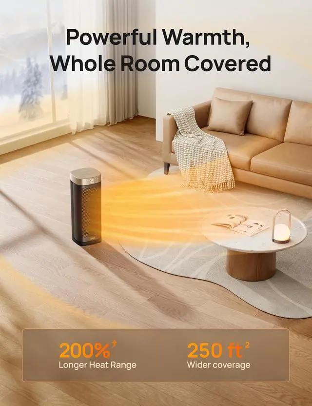 Precise Temperature Control & Energy Saving: DREO ECO mode adjusts power based on real-time conditions, letting you set the ideal room temperature within 41-95°F with 1°F increments, while saving on electricity costs.