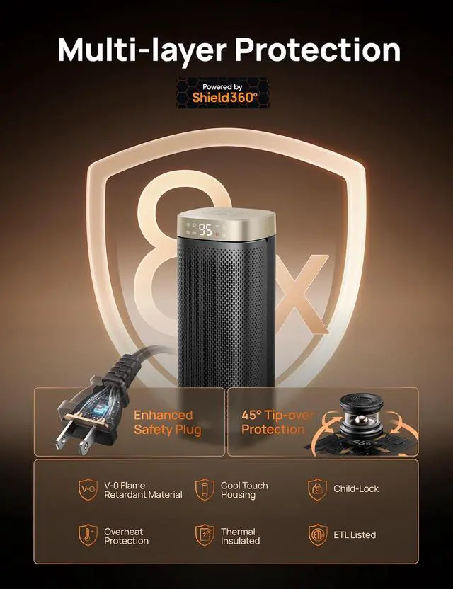 Comprehensive Safety Protection: Features V0 flame-retardant material, overheat protection, tip-over safety. Smart 1-12 hour timer and 24-hour auto shut-off for hassle-free operation. ETL certified for added peace of mind.