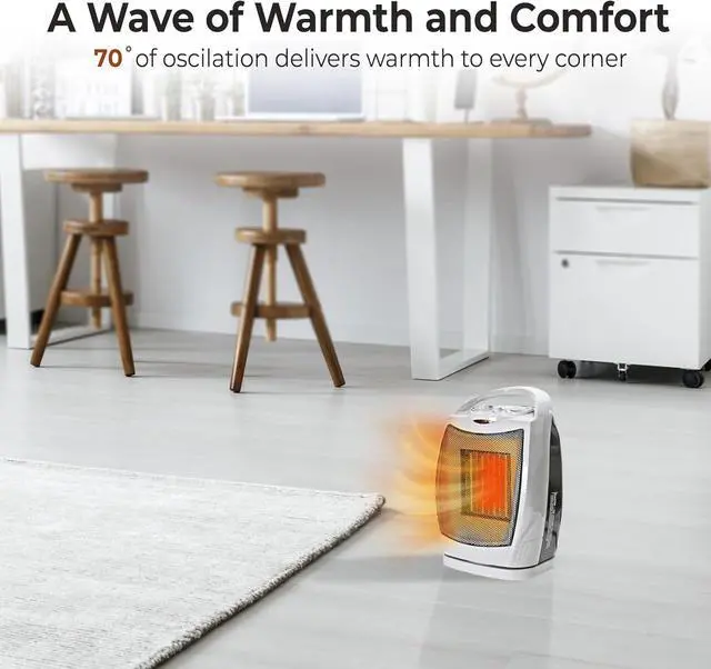 COST-EFFECTIVE COMFORT: Opt for practicality and savings with our oscillating small heater. This choice is both economical and efficient, delivering excellent value by incorporating Energy Save Technology for 30% better energy efficiency. Revel in warmth without compromise as you make a smart investment in both comfort and cost-effectiveness. Our heater is a testament to the fusion of cutting-edge technology and economic sensibility, ensuring that you enjoy optimal heating performance while keeping energy expenses in check.