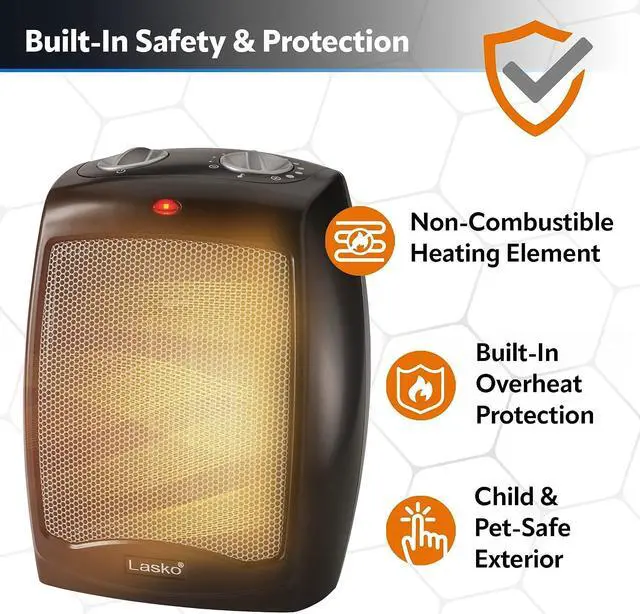 BUILT-IN SAFETY FEATURES: Overheat protection ensures the space heater does not overheat even if left on for an extended amount of time. The space heater also features a cool-touch exterior. This allows the space heater' s body to stay cool even when it' s on high. For added safety, this portable space heater is ETL Listed.