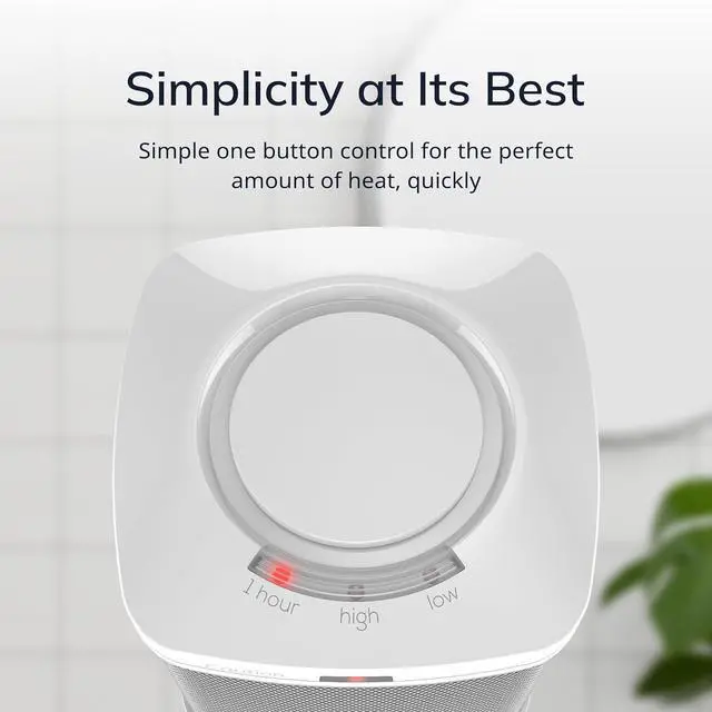 SMALL & MIGHTY Powered by an energy efficient 1500-watt ceramic heating element with 3 heat settings, this little heater puts out a lot of heat. Attractively designed and at less than 8 in. tall with a tiny 6.25 in. x 6.25 in. footprint, it consumes minimal counter top, table, desk or floor space. Its also easily stored when not in use.