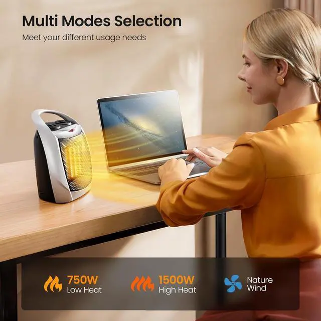 ADJUSTABLE THERMOSTAT - Combined with an adjustable thermostat control, the small portable heater can according to the thermostat setting let your room remain at a comfortable temperature. And allows you to adjust the heater' s 1500 watt ceramic heating element.