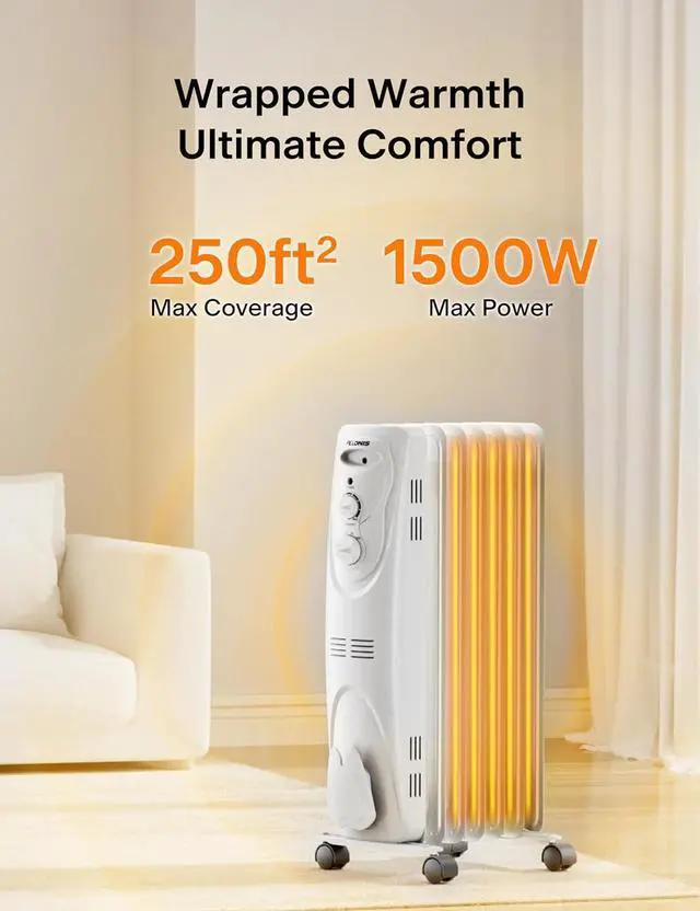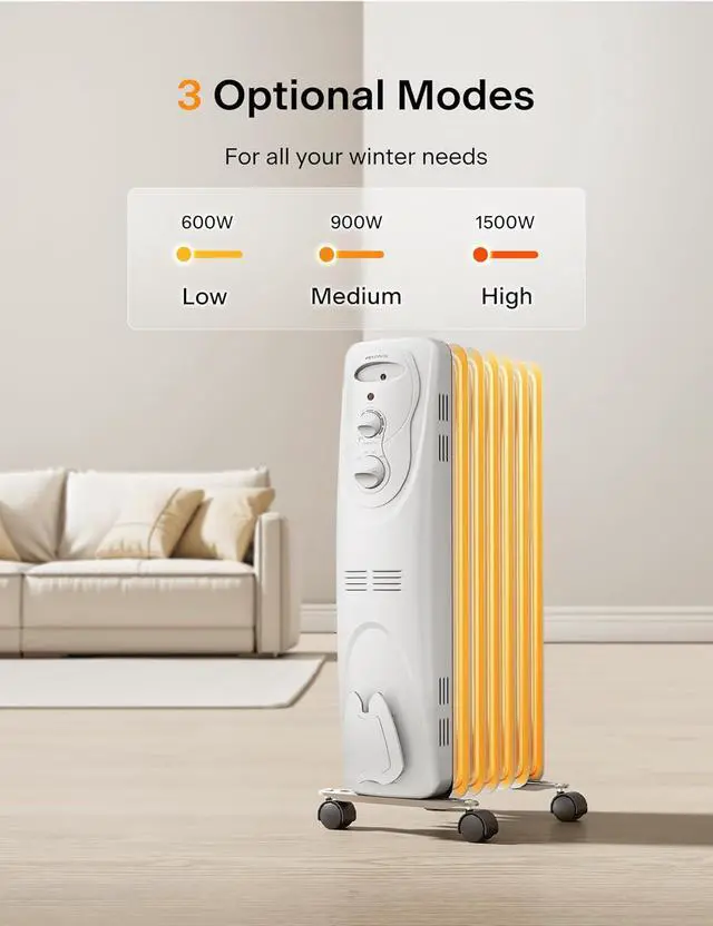 ,: The 1500W power heats the whole house rapidly and the hot air circulation delivers long-lasting and gentle warmth which avoids dryness in winter, making PELONIS oil heater your best choice