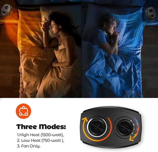 THREE MODES HEATER WITH FAN: 1. High Heat (1500-watt), 2. Low Heat(750-watt ), 3. Fan Only. The power indicator light lets you know when its plugged in