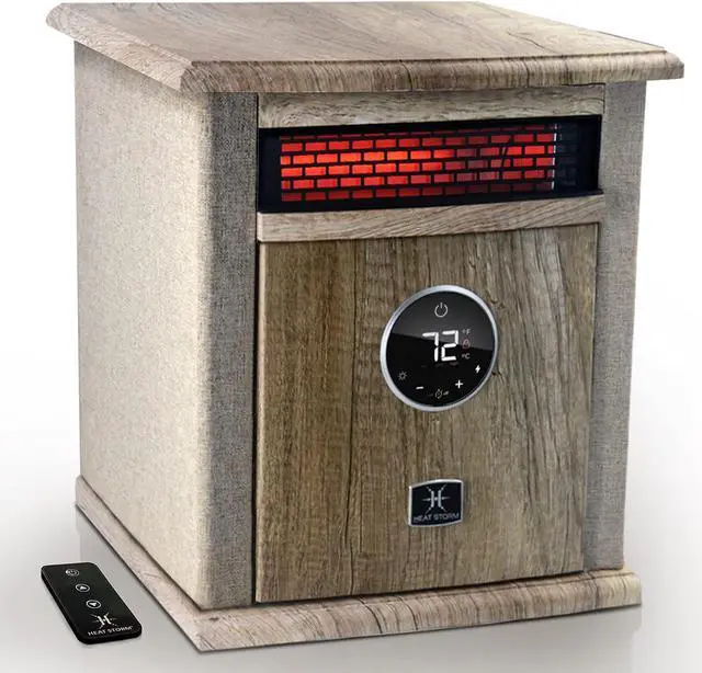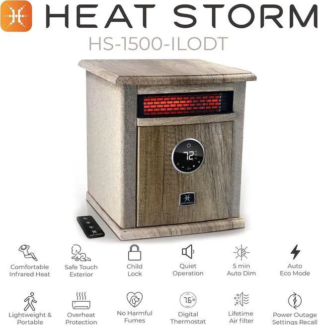 A built-in thermostat with LED display shows you what the ambient temperature is and helps regulate the temperature efficiently. Included remote control allows you to control the temperature with ease.