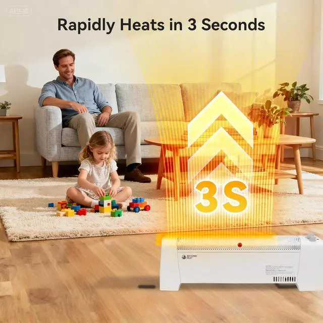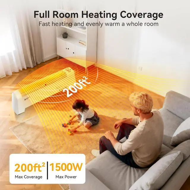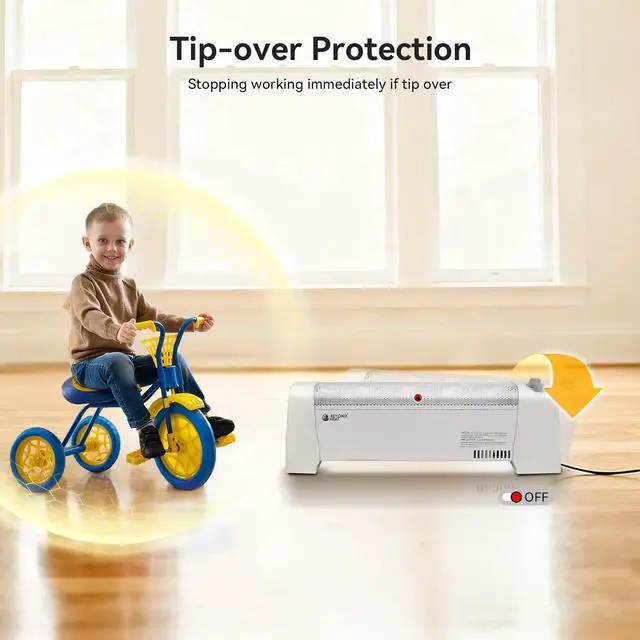 Overheat & Tip-over Protection: Our baseboard Heater has a stay cool body with dent-proof end panels, ensuring safety and durability. It also includes a safety tip-over switch and an overheat protection system, providing you with peace of mind during use.
