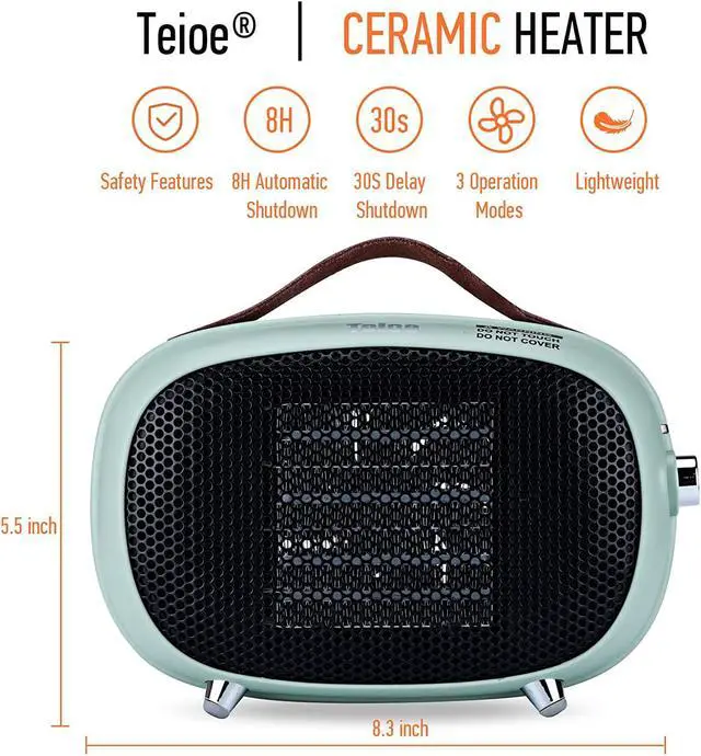 FAST & POWERFUL HEATING - Equipped with advanced ceramic heating elements, Teioe small space heater provides faster and more energy efficient heating. This electric space heater heats up to 70°F in 3 seconds, perfect space heater for bedroom, office and desk use.