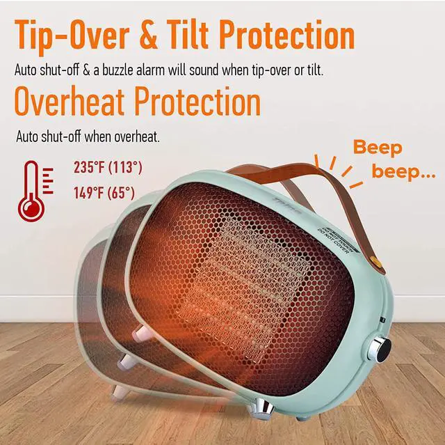 MINI RETRO DESIGN - This mini space heater adopts fashion retro design. The refreshing appearance can decorate your home or office while keeping warm. The mini heater is the ideal Christmas gift for family and friends.