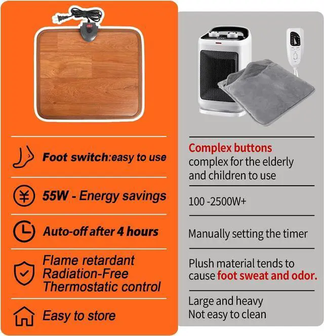 Wider Size / Durable MaterialOur electric foot warmer mat are wider than other feet warmers on the marketSize: 15.5 * 17.7 inch;