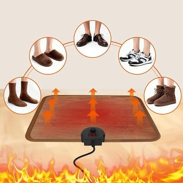 Warm Your Feet / Relax Your BodyThis heated floor mat under desk is made of excellent heat-generating materials, The temperature rises rapidly after a few minutes, which can transfer heat well even without taking off your shoes. Increase circulation, relax and warm the legs. No longer have to cover your feet to keep warm, avoid sweating and smelly feet.